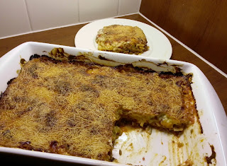 Om toch dat krokante korstje op dit pastagerecht te kunnen maken, besloot ik wat beschuitjes te verkruimelen en er geraspte kaas doorheen te mengen. Dat bleek een goed idee. Niet zo lekker als panko, maar een prima vervanger. Al moet ik nu toch eens gaan kijken of ik hier in de buurt een Turkse supermarkt kan vinden.