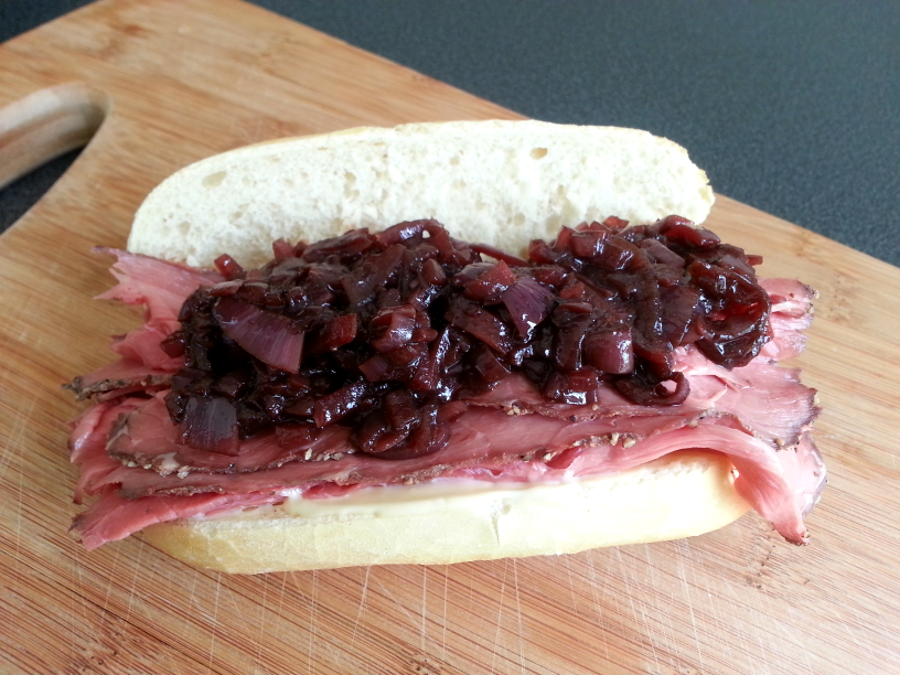 - Laat het mengsel afkoelen en schep in een afsluitbaar potje. Hij is ongeveer een maand houdbaar. Laat voor het klaarmaken van de broodjes de marmelade en rosbief op kamertemperatuur komen. Neem verse warme broodjes en bestrijk ze met de mayonaise. Leg er rosbief op en wat marmelade.